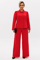 Комплект женский брючный 2-х предметный. Блузка прямого силуэта выполнена из струящейся принтованной ткани, выглядит эффектно, создает современный стиль образу. Горловина аккуратной округлой формы. Рукав втачной, свободный с фантазийным решением, длина 7/8. В комплект входит пояс, низ обработан металлической бахромой, что служит элементом украшения. Средний шов спинки вверху переходит в застежку на 6 навесных петель, пуговиц. В боковых швах предусмотрены разрезы. Брюки классические, слегка зауженные к низу, на притачном поясе, застежка на тесьму-молнию и одну петлю, пуговицу.