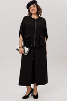 Размер 46: Жакет: ОГ-114, ОТ-112, ОБ-108, ширина плеча-12, длина рукава втачного-67, ширина рукава на уровне ОП-19, длина изделия спинки по центру-53. Топ: ОГ-112, ОТ-100, ОБ-105, ширина плеча-11. Брюки: ОТ в собр.-64, ОТ в раст.-102, ОБ-112, ширина изделия по низу-14, длина изделия по боковому шву с поясом-97.