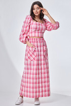 Юбка прямая, длинная с высокими разрезами в боковых швах. Пояс притачной с эластичной широкой тесьмой по спинке - для лучшей посадки на любой талии. Для удобства эксплуатации - карманы в боковых швах.