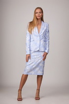 Полуприлегающий силуэт жакета на подкладке словно создан для того, чтобы подчеркнуть достоинство осанки и лёгкость движения. Ткань ""Лумина"" с вискозой в составе играет на свету мягким благородным блеском, словно отражая внутренний свет своей обладательницы. Однобортная застёжка на петли и пуговицы — классика, которая не нуждается в объяснениях. Воротник и лацканы пиджачного типа придают образу деликатную строгость, а рельефы на полочке и накладные карманы с декоративной цепочкой — изысканную игру фактур. Карман-обманка на левой полочке — как лёгкий намёк на тайну, а две декоративные пуговицы на рукавах — как изящные акценты, завершённые с ювелирной точностью. Средний шов по спинке — линия, соединяющая форму и содержание.