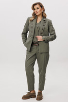 Женский брючный комплект "Магрита" выполнен из текстильной ткани "Нотус" и состоит из брюк и рубашки. Этот комплект выполнен из натуральных тканей (хлопка и льна), а также для эффекта создания легких полосочек используется во составе нейлон.