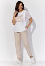 Костюм костюм женский блуза и брюки прямого силуэта, выполнено из текстильного полотна плательной группы с использованием двух цветов ткани.