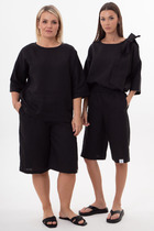 Костюм женский блузка + юбка прямого силуэта, выполнено из льна двух цветов.