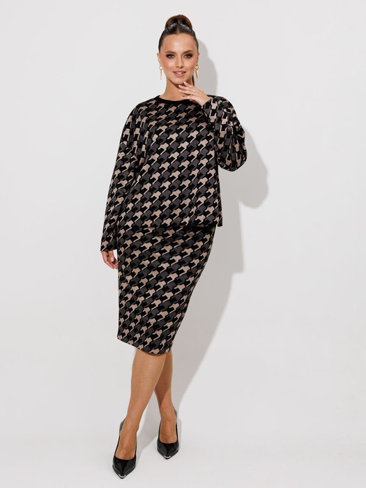 Данный комплект выполнен из мягкого трикотажного полотна, идеально подойдёт для демисезонного периода, благодаря натуральному составу в нём будет тепло но не жарко.Свитшот свободного кроя с длинными рукавами и спущенным плечом, предаёт образу мягкость и непринуждённость.Горловина выполнила из отделочной ткани в "рубчик"что является очень функциональным и стильным элементом.Юбка прямая, на подкладке, на поясе, слегка зауженная к низу. Длина ниже линии колена. Средний шов юбки заканчивается шлицей.