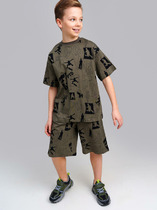 Костюм из кулирки для девочек футболка + шорты. Принт на бежевой футболке в виде котенка, бабочек и надписи, синяя окантовка. Синие однотонные шорты с карманами, длина выше середины бедра. Может быть парой женскому костюму Лимбо (продается отдельно). Размеры от 34 до 40. Возможен заказ товара в розницу.