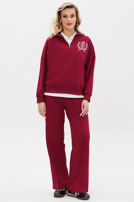 Женский яркий, повседневный костюм, состоящий из оверсайз свитшота с контрастной вышивкой и брюк со стрелками. Это находка для тех, кто ценит свободу, стиль и не хочет отказывать себе в комфорте 24/7.