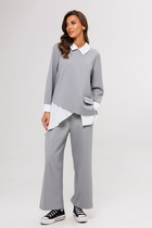 Костюм Gowear из футера в стиле smart casual поможет создать в меру строгий и одновременно расслабленный образ. Костюм состоит из жакета и юбки из эластичной ткани кошкорсе. Жакет прямого силуэта с воротником и лацканами, имеет удобные карманы и застежку на 2 пуговицы. На левом лацкане вышивка-логотип в контрастном цвете. Низ и борта имеют открытые края (эффект необработанного шва), укреплены дополнительной строчкой. Жакет без подкладки. Юбка прямая, облегающая фигуру с разрезом на спинке. Пояс цельнокроенный с резинкой внутри.