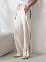 Брюки- прямого силуэта, без пояса, верхний срез брюк обработан обтачками, застежкой- гульфик. Пояс в области спинки присборен на резинку. По переду- декоративный пояс, закрепленный к брюкам петлями и пуговицами. В боковых швах расположены карманы.