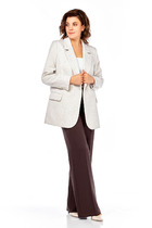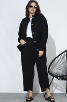 Женский костюм, состоящий из джемпера и юбки, выполнен из мягкого трикотажа, который держит форму. Джемпер свободного силуэта с цельнокроенными рукавами и застежкой-молнией по спинке. Джемпер дополнен дизайнерской вышивкой по переду и спинке. Классическая юбка-карандаш на трикотажной подкладке с завышенной линией талии, на обтачке, застегивается на молнию и имеет сзади шлицу.