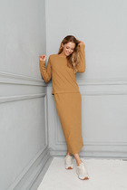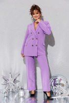 Женский костюм полуприлегающего силуэта, состоящий из рубашки и брюк, выполнен из мягкой костюмной ткани средней плотности. Рукава рубашки со спущенной линией плеча, внутренней патой и манжетой, что позволяет регулировать высоту рукава и представляет собой стильную деталь с изысканным акцентом; воротник рубашечный; по переду накладные клапаны - обманки. Застегивается на петли и пуговицы. Классические брюки прямого силуэта с функциональными карманами в боковых швах, пояс притачной с эластичной тесьмой по спинке для лучшего прилегания; застежка на молнию, петлю и пуговицу. В комплекте съёмный пояс - резинка из основной ткани с пряжкой. Костюм полностью соотвествует заявленному размеру. Пожалуйста, пользуйтесь таблицей замеров готового изделия.