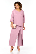 Комплект брючный 3-х предметный состоит из жилета, брюк и джемпера. Жилет из костюмно-плательной ткани прямого силуэта. Горловина V-образной формы, застежка центрально-бортовая на петли и пуговицы. В рельефах переда обработаны карманы. По переду фигурные отлетные кокетки. Спинка разрезная, с кокеткой. По боковым швам разрезы, по плечевым паты. Брюки средней посадки, заужены к низу за счет вытачек. По переду обработаны боковые карманы с подрезным бочком, по задним деталям фигурные накладные. Пояс в 58-62 размерах частично на резинке. Джемпер свободного силуэта, рукав цельнокроенный, дополнен печатью.