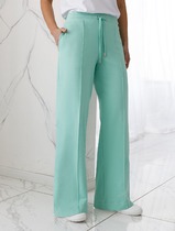 Костюм женский, состоящий из жакета и юбки. Жакет прямого силуэта без подкладки, длиной до линии бедра. По переду жакета настрочены накладные карманы с встречными складками. В шве притачивания кокетки расположен клапан кармана, застегивающийся на петлю и пуговицу. В среднем шве спинки расположена встречная складка. Рукав втачной одношовный, прямой. По низу рукава расположена пата, застегивающаяся на петлю и пуговицу. По низу жакета обработан отрезной пояс. Горловина обработана втачным воротником с лацканами. Застежка центральная , однобортная на петли пуговицы. Юбка женская на подкладке А – силуэта длиной до середины икры. По переду юбки заложены встречные складки и нстрочены клапаны с декоративными пуговицами. Спинка юбки цельная. Карманы обработаны в боковом шве юбки. По левому боковому шву юбки находится застежка – молния. Верхний срез юбки обработан притачным поясом с резинкой по спинке.