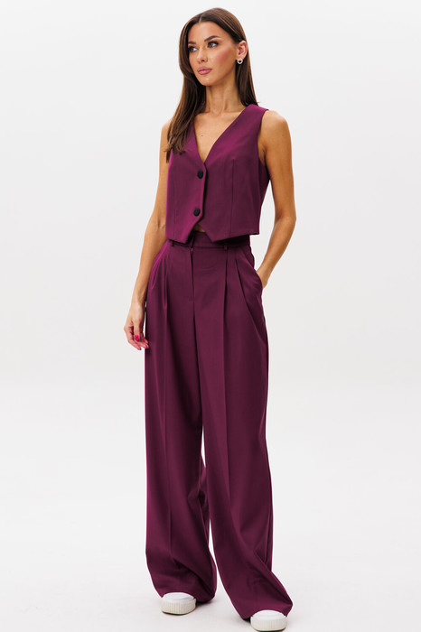 Этот костюм, состоящий из жилета классического кроя и прямых брюк, выполнен из костюмной ткани. Жилет подчёркивает утончённость и изысканность вашего образа, а прямые брюки создают элегантный и плавный силуэт. Классическая костюмная ткань премиального качества придает костюму эффектный и гламурный вид, идеально подходящий для офиса, вечерних мероприятий и торжественных случаев. Этот ансамбль станет центром внимания, подчёркивая ваш безупречный стиль и уверенность.