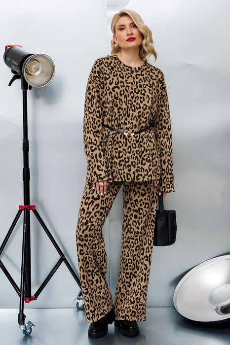 Трикотажный комплект с брюками. Комплект состоит из джемпера свободного кроя и брюк. Джемпер с разрезами по боковому. Брюки с поясом на резинке, и атласной лентой шнурком для регулировки прилегания по талии. Супер мягкий и приятный на ощупь трикотаж.