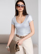 Футболка облегающая из хлопка в рубчик с V вырезом и матовым покрытием металлик