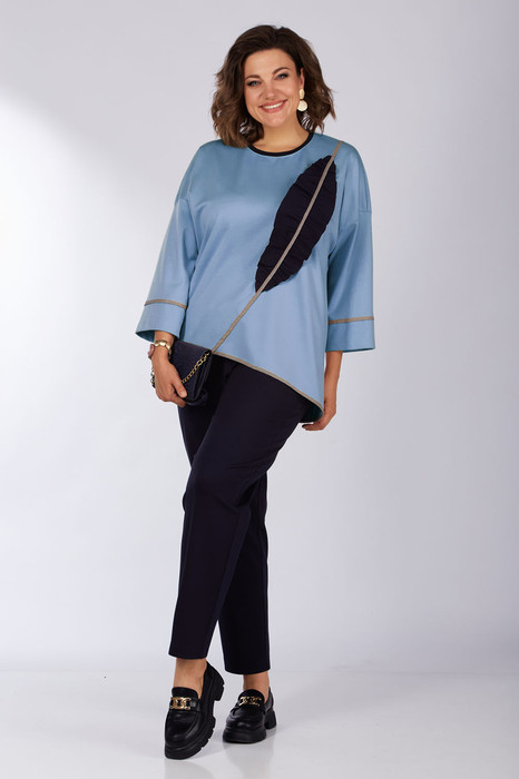 Красивый и стильный костюм в котором вы можете пойти не только на прогулку, но и ходить в нем на работу, по делам, выбираться в кино или кафе. В комплекте одежды будет комфортно осенью, весной и летом. Костюм состоит из брюк свободного силуэта, на резинке,  с карманами и стильного дизайнерского джемпера с асимметричным декоративным подрезом и отделкой, делающие образ этого костюма интересным и запоминающимся. Рукав втачной на спущенной пройме с отрезной манжето. Этот стильный  костюм выполнен из трикотажа высокого качества,  станет базовой вещью вашего гардероба. Подойдет для девушек, ценящих удобство, а также комфорт, красоту и стиль.