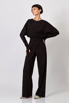 Красивый нарядный комплект двойка на подкладке. Блузон из легкой трикотажной ткани расшитой пайетками с имитацией запаха, втачным поясом и баской по переду со сборкой, рукав втачной, длинный. Все детали блузона обработаны трикотажной подкладкой, что исключает дискомфорт покалывания пайеток. Брюки из костюмной ткани прямого силуэта на притачном поясе с эластичными лентами по бокампояса. Средней посадки. С боковыми карманами Застежка молния спереди.