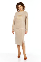 Брюки комплекта созданы в свободном стиле палаццо. В пояс брюк по спинке вставлена эластичная тесьма, шириной 3 см. Спереди пояс фиксируется горизонтально на петли/пуговицы и вертикалную закрытую клапан-молнию (гульфик).