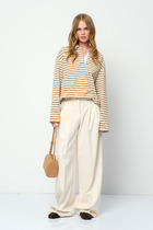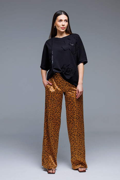 Стильный брючный комплект, состоящий из свободных прямых брюк и задекорированной майки oversize.