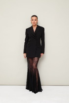 Стильный гармоничный комплект, состоящий из жакета и свободных брюк в стиле палаццо.