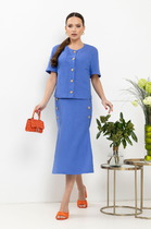 Стильный, элегантный, в меру дерзкий женский комплект, состоящий из джемпера и юбки станет отличным дополнением к Вашему осеннему гардеробу. Джемпер свободного силуэта, со спущенной линией плеча и округлым вырезом горловины, выполнен из качественного однотонного трикотажа.  Лиф и спинка изделия декорированы ткань. Рукав в модели на спущенной пройме, длинный.  Низ изделия и рукава оформлен мягкой манжетой. Плечевой шов и центр рукава украшен декоративной лентой. В комплекте идет эффектная A-образная юбка 8-клинка! Модель на притачном поясе с застежкой на тесьму-молнию по спинке. Перед с разрезом переходящий в имитацию застежки на навесные петли и пуговицы. В юбке присутствуют карманы и подкладка.