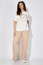Изделие идеально подходит для повседневного ношения, офиса или вечернего выхода. Отлично сочетается с базовыми браками из коллекции от бренда «Лилиана». Брюки классического покроя, средней посадки с боковыми кармаами. Пояс притачной, в боковых участках вставлена резинка. Застежка: брючная тесьма-молния с обработанным гульфиком. В брюках заутюжены канты.