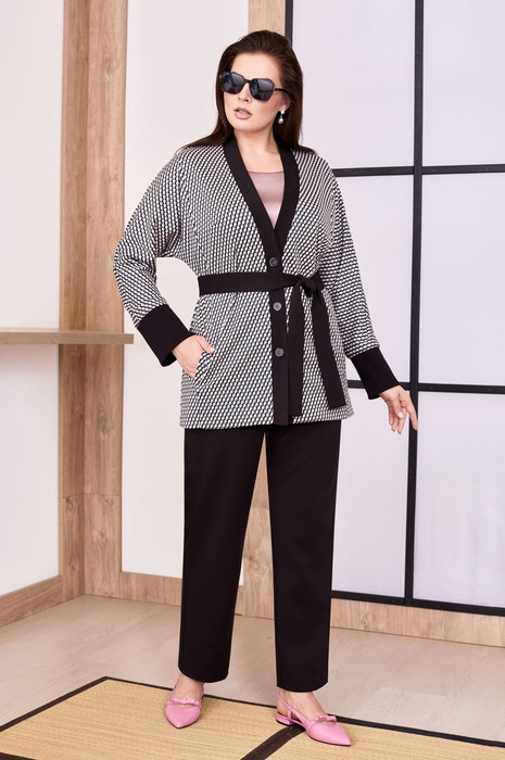 Состав: Жакет- Вискоза-9%; ПЭ-89%; Спандекс-2%; Топ- ПЭ-97%; Спандекс-3%; Брюки- Вискоза-23%; ПЭ-73%; Спандекс-4%;