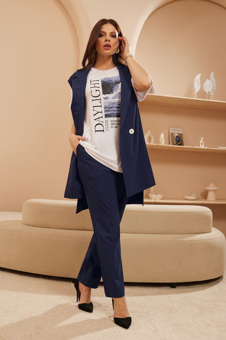 Капсульный  брючный костюм  из полоски с базовой футболкой  must-have для  современной женщины.  Многофункциональный комплект позволит создать разнообразие луков, предметы капсулы легко сочетать с другими вещами создавая стильные и современные образы , подходит для шпилек и обуви на плоском ходу.
