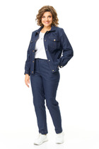 Комплект 2ка, состоящий из жилета и брюк. Жилет с отложным воротником и поясом. Перед жилета на запах с застёжкой на кнопки, на плечах декоративные паты. По бокам жилета выполнена имитация клапанов карманов. Брюки прямого силуэта на эластичной резинке по талии. По переду расположены карманы с наклонным входом.