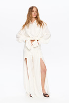 Костюм 2ка в стиле спортшик, состоящий из джемпера и брюк. Джемпер свободного объёма с декором по переду. Горловина джемпера и манжеты выполнены из довязов. Брюки свободного кроя от бедра. Талия брюк на резинке, по переду и сзади расположены карманы,дополненные декором. Комплект из мягкой не толстой ткани с эффектом "велюр". Длина джемпера 59-60 см , длина брюк 115-116 см.