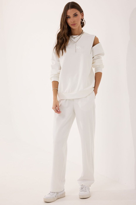 Брюки прямого силуэта из комфортного трикотажного полотна. По верху брюк притачной пояс на резинке с кулисой и фиксаторами. В боковом шве карманы. Ширина брюк по низу регулируется за счет эластичной тесьмы и фиксаторов. Обращаем ваше внимание, что фурнитура может незначительно отличаться от фото.
