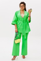 Элегантный хлопковый комплект, состоящий из удлиненного жилета и брюк. Жилет полуприлегающего силуэта с центральной застежкой на пришивные пуговицы. Дополнен боковыми функциональными карманами с клапанами. Брюки прямого кроя, слегка заужены книзу, с притачным поясом, дополненным эластичной тесьмой. Застежка на молнию и пришивную пуговицу. Дополнены боковыми карманами. Длина жилета от плечевого шва 69 см. Длина брюк по боковому шву 88 см.