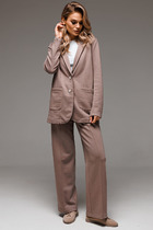 Стильный компект из жакета и брюк. Двубортный жакет выполнен из костюмной ткани в комбинации с темно-синим джинсом. Жакет на подкладке с застежкой на пришивные пуговицы. Рукав втачной, дополнен манжетой из джинса. Воротник отложной. Брюки классического прямого кроя с притачным поясом, выполненным из джинса, дополненным эластичной тесьмой. Посадка средняя. Дополнены удобными боковыми карманами. Застежка гульфик на молнию и пришивную пуговицу. Брюки выполнены из комфортной костюмной ткани. Длина жакета от плечевого шва 58см. Длина рукава 60см. Длина брюк по боковому шву 104см.
