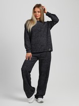 Костюм молодежный состоит из футболки и брюк 7/8. Брюки с боковыми карманами и разрезами по низу. Футболка комбинированная со спущенной линией плеча.