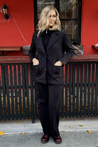 Универсальный женский брючный костюм для повседневной носки, а также торжественных мероприятий, выполнен из однотонного легкого костюмного материала . Жакет удлиненный с ассиметричным низом, распашной с раскладным бортом. Спинка с центральным швом. Рукав втачной одношовный с цельнокроеной манжетой . Жакет со съемным поясом на застежке-карабине. По правой стороне переда настрочной карман -книжка. Брюки- палаццо, длинные с карманами в боковых швах ,на поясе с резинкой. Украшением данного костюма служат декоративный карман по переду и брошь. Оба изделия отлично сочетаются между собой и могут легко создавать интересные комбинации с другими изделиями вашего гардероба. Под жакет можно надеть любой легкий топ. Длина футболки по спинке 77 см (в самой низкой точке), длина рукава от горловины шва 40 см. Длина брюк по боковому шву 111 см +-1 см, по шаговому 82 см +-1 см. Изделие подойдет на рост 170 см.