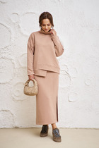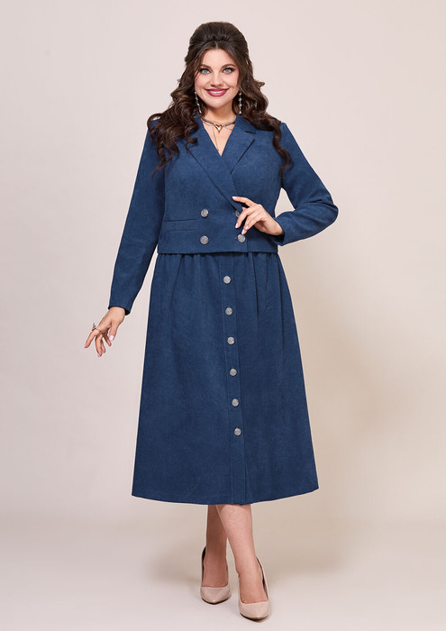 Комплект женский, состоит из жакета и юбки, выполнен из штруксовой ткани. Жакет на подкладке, полу-прилегающего силуэта с двубортной застежкой, горловина обработана воротником пиджачного типа. Также на полочке обработаны вытачки и рельефы, также прорезные листочки. Рукав втачной, длинный, выполнен из основной ткани, спинка со средним швом и рельефами. Юбка расклешенного силуэта, выполнена из штрукса. Верхний срез присборен, обработан притачным поясом, также по переднему полотнищу обработана притачная планка с застежкой на петли-пуговицы. Эффектны и стильный комплект выполненный в трендовых цветах отличный выбор на каждый день!