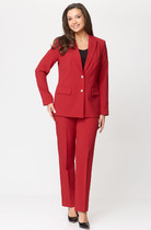 Костюм двухпредметный состоит из жакета и брюк.  Элегантный дизайн костюма  с брюками подарит комфорт и уверенность в себе. Жакет с центральной застежкой на 2 петли и пуговицы с прорезными функциональными карманами по переду. Рукав втачной двухшовный со шлицей декорированной пуговицами. Брюки прямые от линии калена, застежкой в боковом шве на потайную молнию. В комплект входит пояс с пряжкой. Костюм двойка отлично подойдет для офиса, для праздника, на каждый день для прогулок.  Длина жакета 69 см, длина брюк 110 см