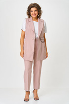 Комплект женский 2-ух предметный, состоящий из жакета и юбки. Жакет со спущенной линией плеча и цельнокроеным рукавом. По переду отрезная кокетка, воротник- стойка, рукава и планки. По переду настрочены нагрудные клапаны. Синка со средним швом. На левом рукаве о низу настрочена нашивка. Центральная застежка по планкам на 5 пуговиц и петель. Низ жакета можно регулировать с помощью эластичного шнура и фиксатора. Жакет без подкалки. Юбка на широкой обтачке А- силуэта, на подкладке. По переднему и заднему полотнищу заложены складки. По бокам расположены наклонные карманы. Застежка сзади на потайную тесьму-молни