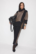 Комплект женский состоит из блузы и брюк.