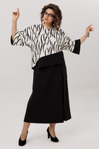 Стильный и элегантный костюм, состоящий из жакета и юбки. Жакет прилегающего силуэта выполнен по переду и спинке с рельефами, выходящими из проймы. На полочке обработаны карманы в рамку с клапаном. Спинка со средним швом. Рукав втачной двухшовный. Воротник пиджачного типа. Застежка центральная на петли с пуговицами. Юбка прямая, зауженная к низу, на притачном поясе с резинкой. Застежка на тесьму-молнию в среднем шве, который переходит в шлицу. Жакет и юбка на подкладке