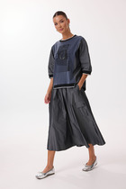 Юбка-карандаш - воплощение классической офисной элегантности. Ее строгий силуэт, подчеркивающий линию бедер, создает безупречно профессиональный образ. Юбка зауженная к низу. Изюминка дизайна спереди: элегантная шлица, декорированная аккуратной отделкой из пуговиц. Эта деталь не только добавляет динамику и визуальный интерес, но и обеспечивает свободу движения. Боковая застежка-молния обеспечивает аккуратную посадку и легкое надевание, сохраняя чистоту линий спереди и сзади. Притачной пояс с резинкой сзади. На подкладке. Такая юбка является не просто базовой вещью, а законченным стильным акцентом Вашего делового гардероба. Она безупречно сочетается с блузами, жакетами и топами, создавая элегантный и уверенный ансамбль.