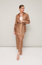 Облегченный костюм из натуральной ткани — это идеальный выбор для стильных и комфортных вечеринок или встреч. Жакет классического кроя с бочком и изящными талиевыми вытачками подчеркивает фигуру, а карманы с клапанами добавляют функциональности. Воротник пиджачного типа и закругленные борта придают образу элегантность, а спинка с средним швом и шлицей обеспечивает свободу движений.