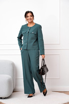 Новая коллеция начинается с идеального ансамбля. Куртка с утонченной фактурой и умными деталями + брюки с идеальной посадкой. Куртка свободного силуэта с накладными карманами на полочке.Застежка-потайная.Рукава одношовные. Низ рукавов с патами на пуговицах.Спинка без среднего шва, с кокеткой в верхней части.   В низу спинки-хлястики на пуговицах. Воротник на стойке.Изделие на подкладке.