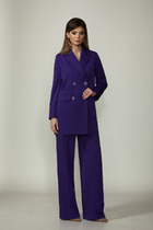 Туника полуприлегающего силуэта . Спинка со средним швом и талиевыми вытачками. По переду выполнены нагрудные вытачки, которые выходят из боковых швов. Низ туники ассиметричной формы. Вырез горловины округлой формы. Брюки прямые, слегка зауженные к колену. На притачном поясе сзади с резинкой. Брюки с карманами. Застежка на тесьму молнию. Костюм декорирован съемной брошью.