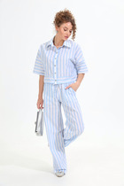 Яркий комплект: жилет с воротником "апаш" и брюки "палаццо". Этот смелый и элегантный комплект сочетаем в себе дерзость и женственность, создавая образ, который невозможно игнорировать. Жилет приталенного силуэта с центральной  застежкой на петли пуговицы. Вертикальные рельефы. Главная акцентная деталь - шикроий воротник "апаш". Спинка с центральным швом и рельефами. Брюки "палаццо" создают воздушный силуэт. Высокая талия визуально удлиняем ноги. Брюки на притачном поясе, с двумя складками по переду. Боковые карманы. Сзади резинка. Молния в среднем шве. Жилет на подкладке.
