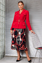 Яркий комплект: жилет с воротником "апаш" и брюки "палаццо". Этот смелый и элегантный комплект сочетаем в себе дерзость и женственность, создавая образ, который невозможно игнорировать. Жилет приталенного силуэта с центральной застежкой на петли пуговицы. Вертикальные рельефы. Главная акцентная деталь - шикроий воротник "апаш". Спинка с центральным швом и рельефами. Брюки "палаццо" создают воздушный силуэт. Высокая талия визуально удлиняем ноги. Брюки на притачном поясе, с двумя складками по переду. Боковые карманы. Сзади резинка. Молния в среднем шве. Жилет на подкладке.