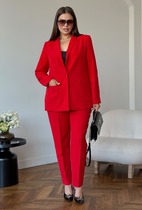 Стильный женский костюм, состоящий из жакета и брюк, выполнен из костюмной ткани (тянется).