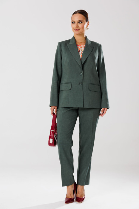 48р – жакет – ОГ 108, ОТ 102, ОБ 116, ширина рукава 39; блуза – ОГ 110, ОТ 102, ОБ 110; брюки – ОТ 84/100, ОБ 112