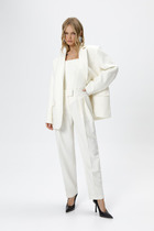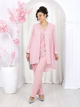 Нарядный женский комплект, состоящий из блузы, топа и брюк.