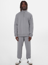 Костюм мужской из трикотажного полотна "кулирка" в комбинации двух видов: гладкокрашенного и с рисунком в крупную клетку, сочетающихся между собой по цвету, состоящий из джемпера и брюк. Джемпер - из гладкокрашеного полотна, свободного покроя, с длинными втачными рукавами и приспущенными плечами, с горловиной овальной формы и тематическим принтом, выполненным в технике шелкографии. Горловина, нижние срезы рукавов и низ изделия обработаны подгибкой с отделочным широким кантом контрастного цвета. Брюки - из полотна в клетку, свободного покроя, прямые, на притачном поясе с эластичной тесьмой внутри, с карманами в боковых швах. Нижние срезы обработаны подгибкой.